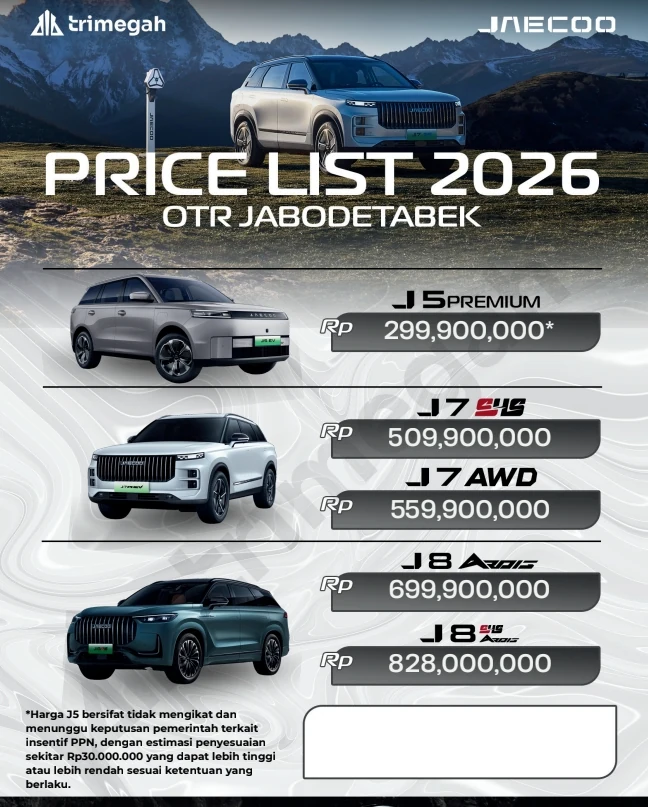 Pricelist Jaecoo Update Maret 2026